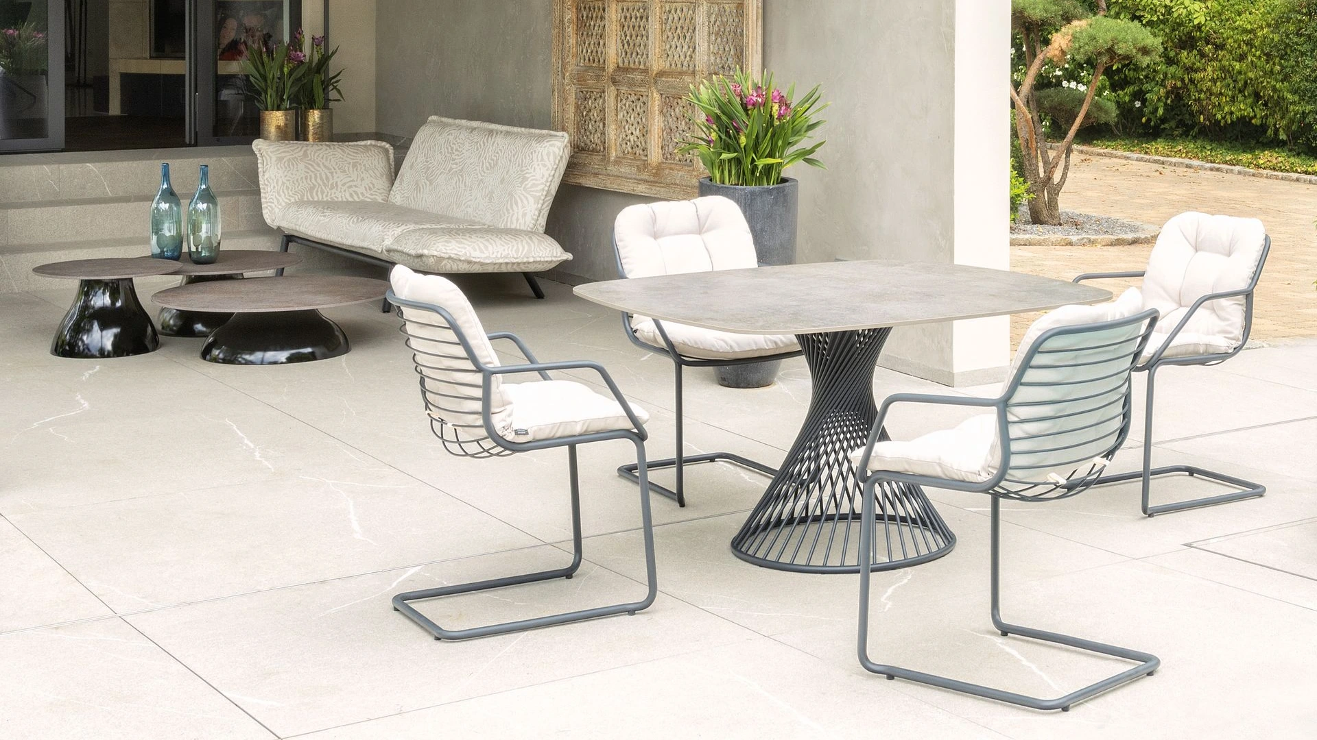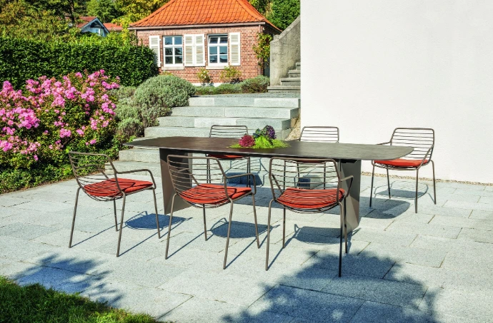 Das Tischgestell ist neben klassischem Anthrazit auch in der edlen Farbvariante Dark Bronze erhältlich. Tierra richtet sich an Menschen mit Sinn für ausdrucksstarkes Design, hochwertige Materialien und eine klare, souveräne Gestaltung im Außenraum.
