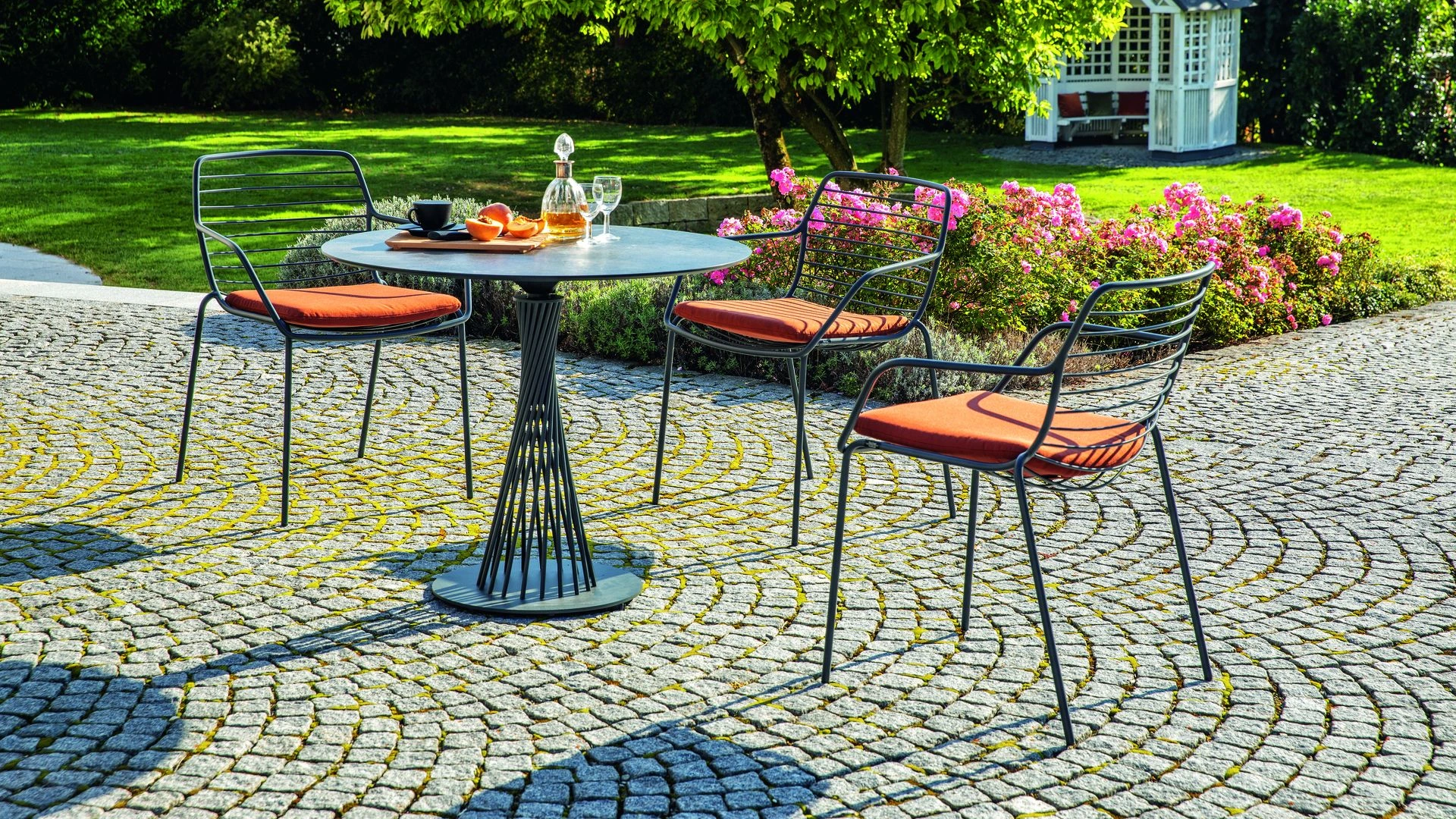 Die Claris Collection überzeugt durch Leichtigkeit, Funktionalität und eine bewusst zurückhaltende Formensprache. Der Claris Sessel ist stapelbar, angenehm bequem und für den dauerhaften Einsatz im Freien konzipiert. Gefertigt aus pulverbeschichtetem Edelstahl in Anthrazit oder Dark Bronze, zeigt er sich besonders wetterfest, pflegeleicht und langlebig. Als klassischer Sessel oder als Freischwinger fügt sich Claris transparent und harmonisch in unterschiedlichste Außenräume ein, ohne sich in den Vordergrund zu drängen.