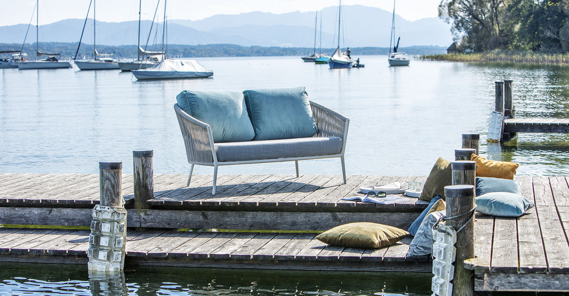 Den besten Sitzkomfort bieten die passenden Sitz- und Rückenkissen. Neben den angebotenen Standardkissen können elegante und individuelle Kissen aus einer Vielzahl hochwertiger Outdoor-Stoffe ausgewählt werden. Die Kissen trocknen dank der Quick-Dry-Foam-Füllung schnell.
