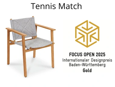 The Tennis Match outdoor chair, designed by Kurt Ranger and produced by Fischer Möbel, impressed the jury and was awarded the gold prize, the highest level in this competition.
