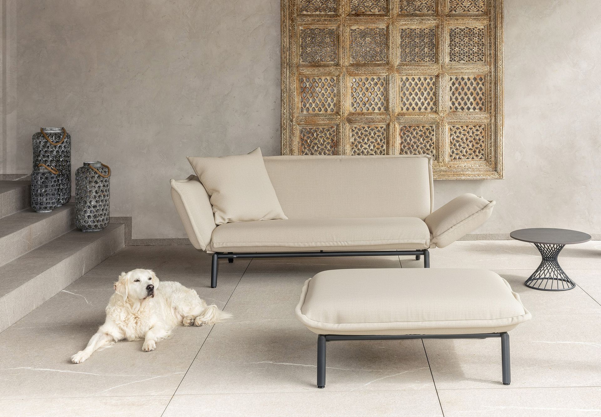High-quality outdoor fabrics form the textile basis of the Luna Lounge. Pleasantly soft yet robust, they are designed for permanent outdoor use. Available in several fabric categories, Luna can be precisely tailored to architectural context, usage and personal atmosphere.