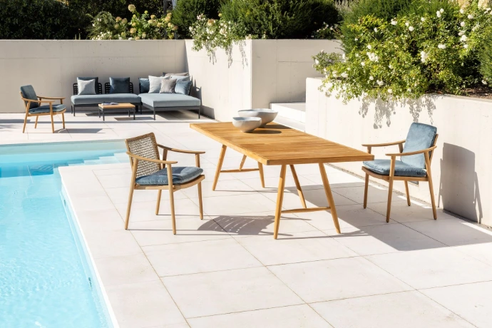 Der Beluga Tisch ist ein vielseitiges Statement für den exklusiven Wohnraum im Freien. Mit seiner klaren, zeitlosen Gestaltung verleiht er Terrassen und Gärten eine ruhige, hochwertige Präsenz und wird zum zentralen Treffpunkt im Outdoorbereich.