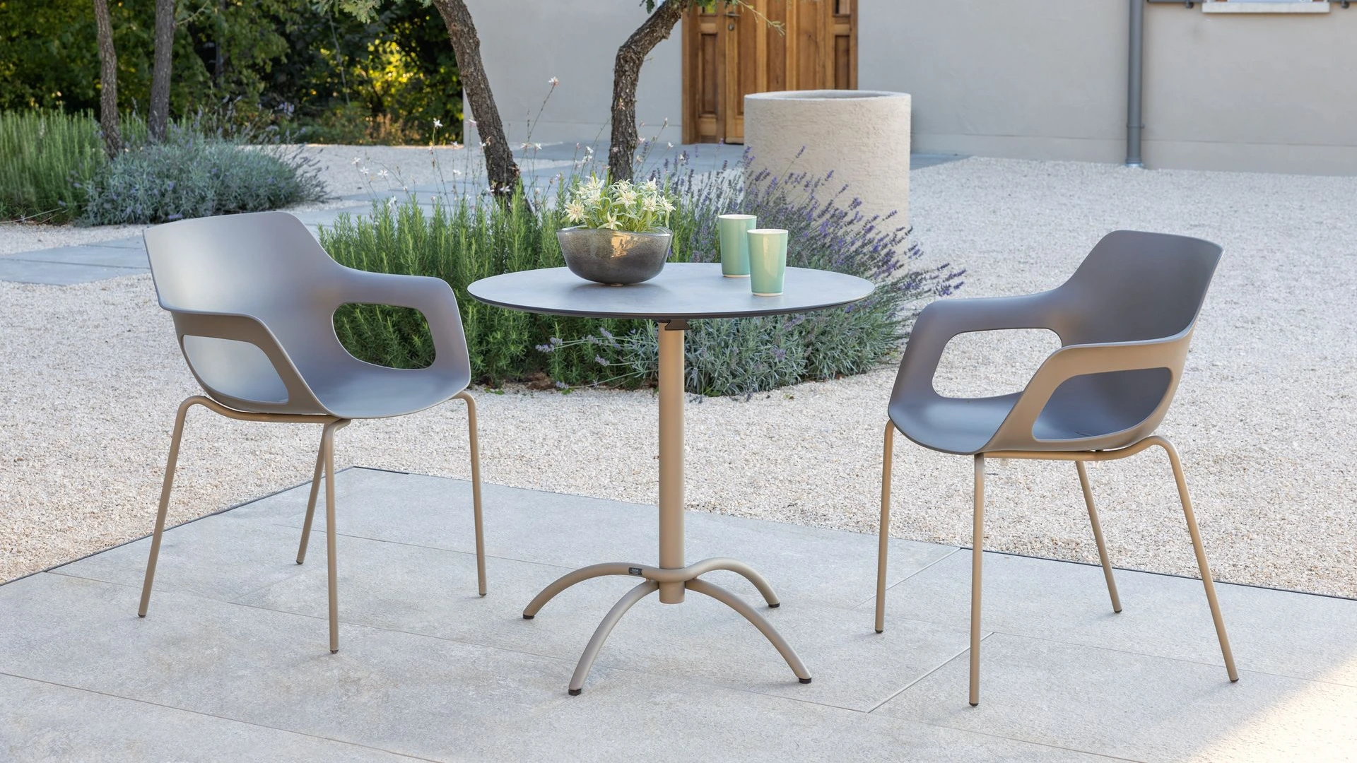 Passend dazu ergänzen klappbare Taku Bistro-Tische die Kollektion. Sie sind ideal für kleinere Sitzplätze, Terrassen oder Balkone und ermöglichen eine zeitlose, platzsparende Gestaltung mit klarer Haltung und hoher Alltagstauglichkeit.