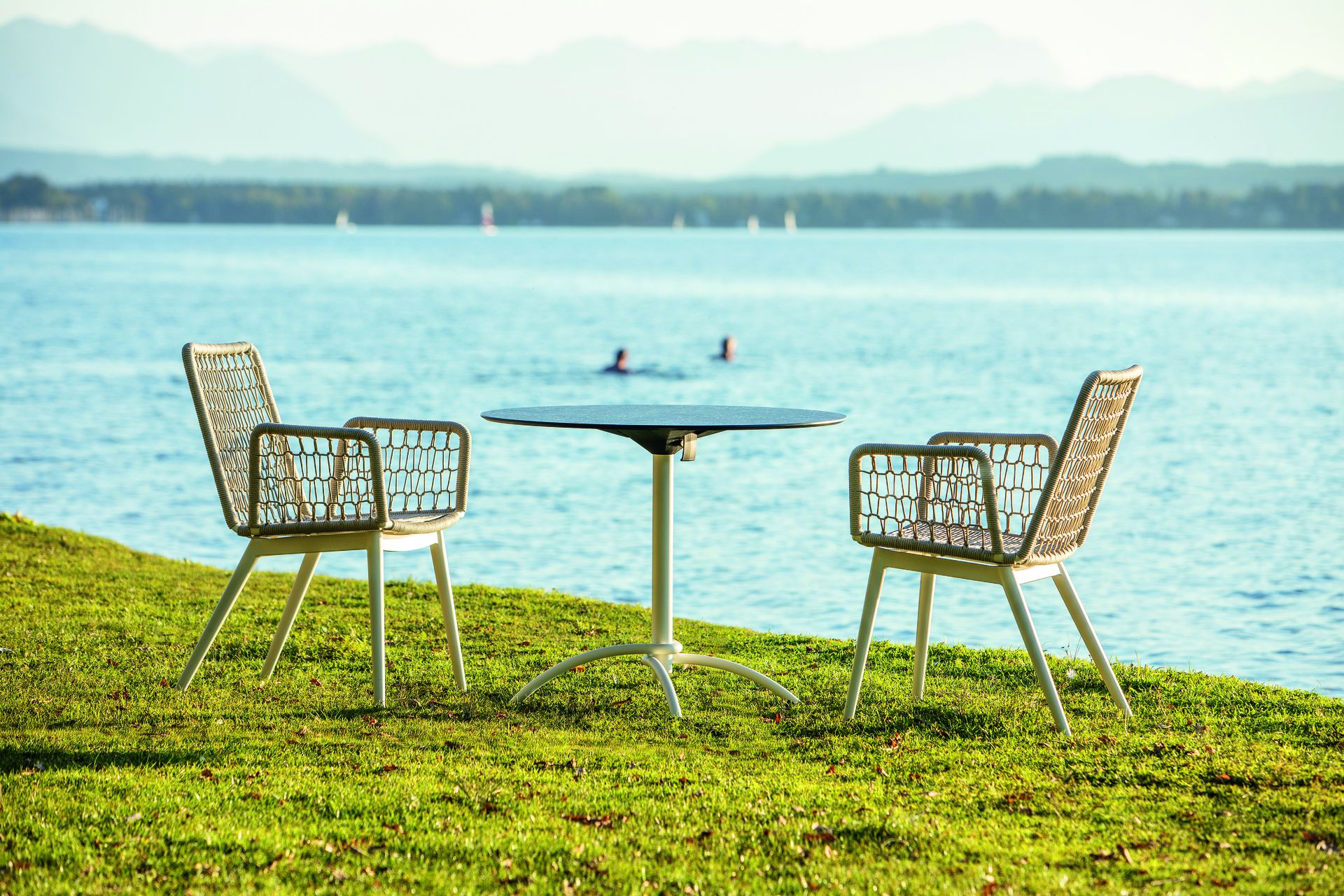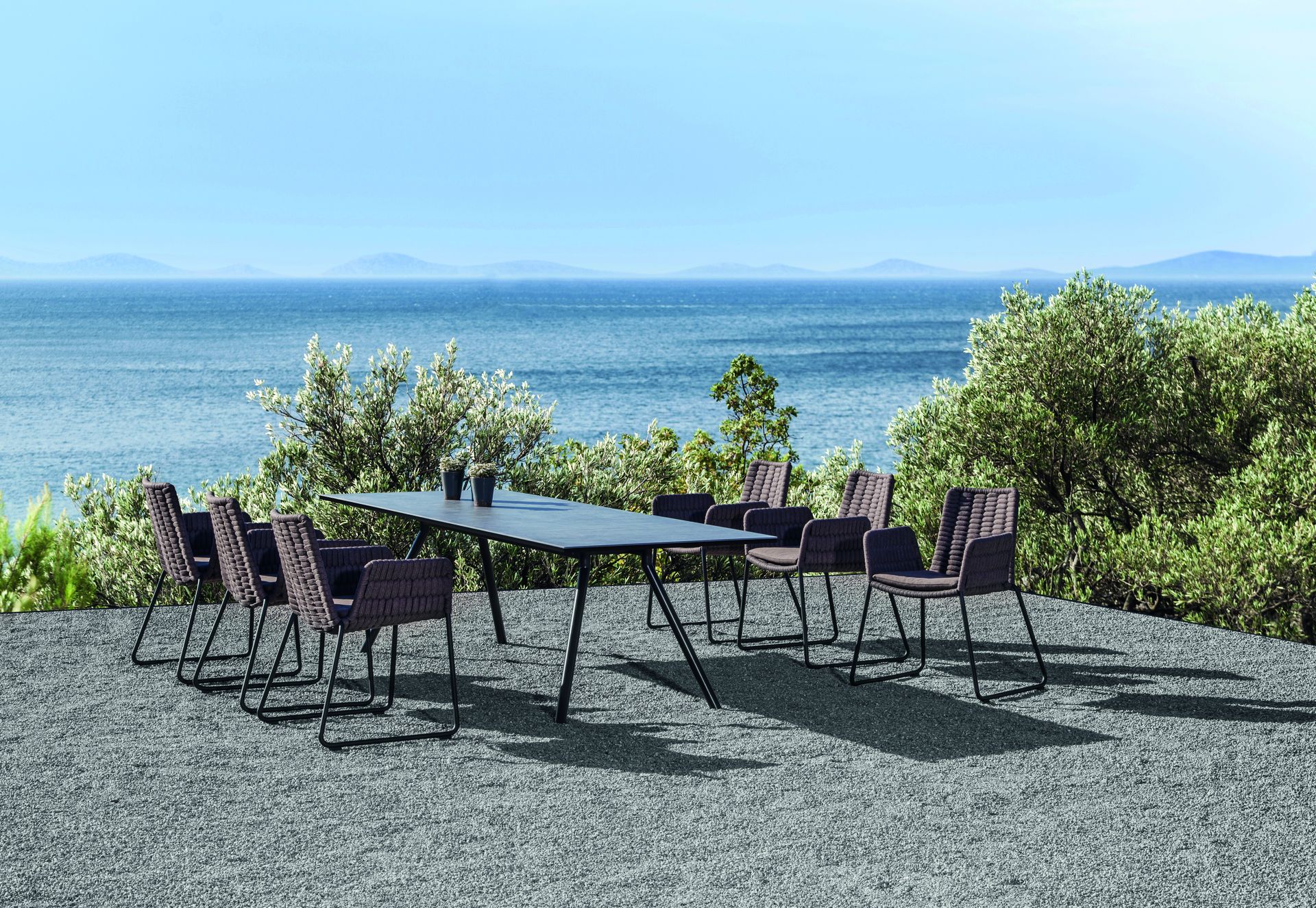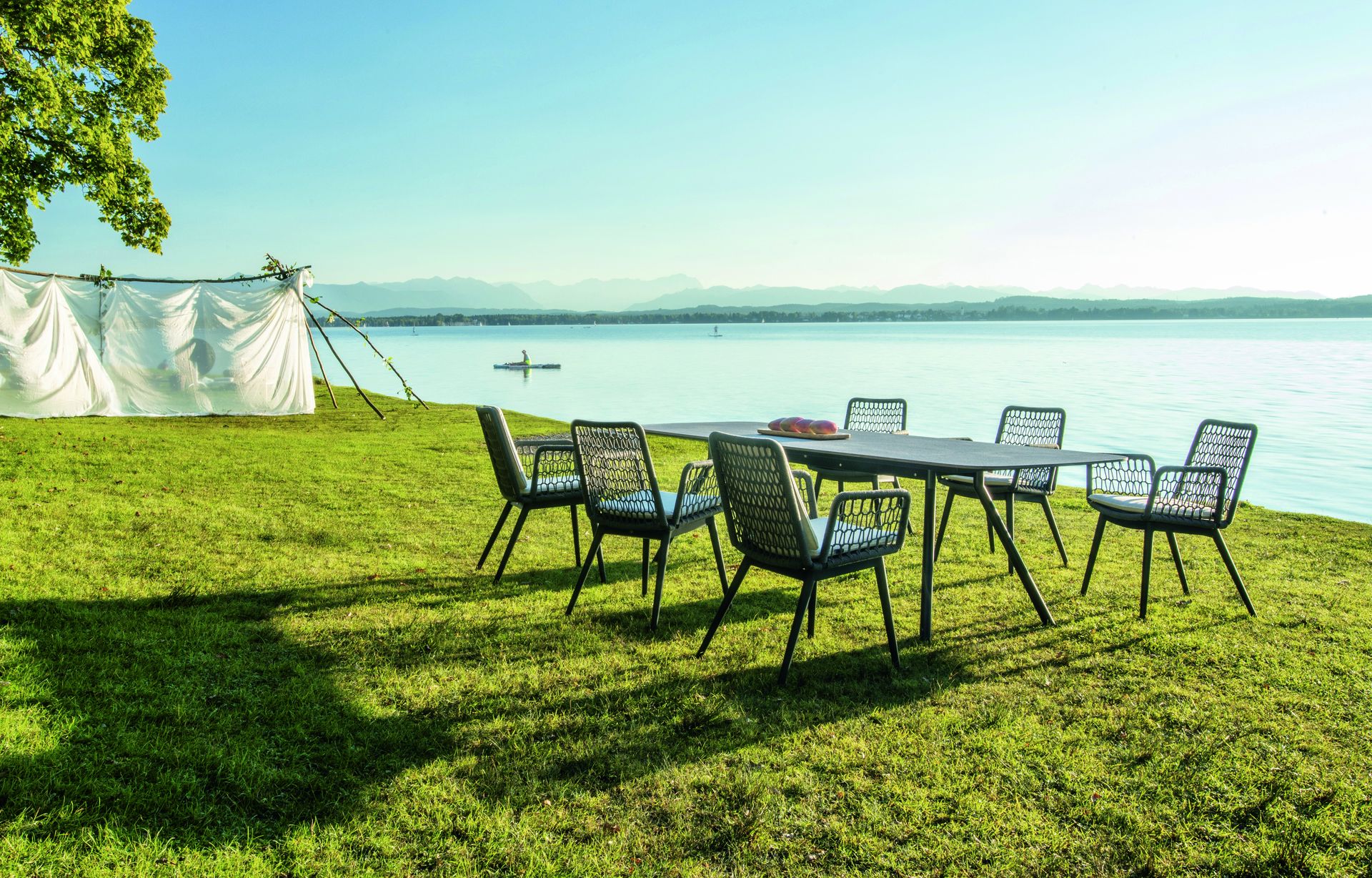 Je nach Einsatzbereich stehen Untergestelle aus Teakholz oder Aluminium zur Wahl, letztere in Weiß oder Anthrazit. Ergänzende Sitz- und Sitz-Rückenkissen erhöhen den Komfort, ohne den klaren Charakter des Möbels zu verändern. Dank der hochwertigen Flechtung überzeugt der Sessel auch ohne Auflagen – funktional, ästhetisch und angenehm im Sitzgefühl.